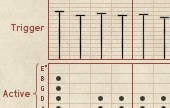16ステップでコードをトリガーしたり、ストロークの速度やアップ/ダウン、演奏方法(ノーマル、ミュート等)を視覚的に設定。