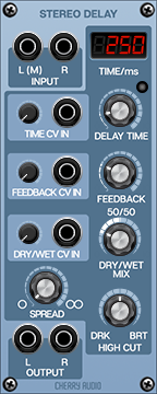 ステレオイン/アウト、時間のCVコントロール、フィードバック、ミックス、および入力をステレオ化するための「スプレッド」コントロールを備えたフル機能のディレイ。