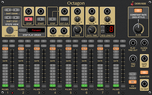 Octagonのバンクおよびステップシフトコントロールを使用して、最大32ステップを有効にして表示できます。Octagonは、キーボードコントローラーまたは別のシーケンサーを介してステップを「演奏」するための革新的なCVコントロールモードを含む、多数のステッププレイオーダーモードも提供しています。CV入力の完全な配列により、テンポ、ノートゲートタイム、シーケンスの長さ、トランスポートコントロールなどのリアルタイムの電圧制御が可能になります。