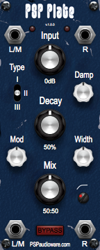 高精度なプレートリバーブ・プラグインをお探しなら、「PSP Plate」がお勧めです。3種類のプレートタイプから選択でき、入力ゲイン、リバーブテールの質感、ディケイタイム、幅、ミックスレベルを調整可能。もう少し動きや揺れが欲しい時は、モジュレーション量を調整可能です!
