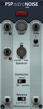 PSP NitroやPSP N2Oに搭載されたノイズジェネレーターをモジュール化したもので、2つの独立したステレオアウトを備えています。「ホワイト/ピンク/ブラウン」という3種類のノイズを出力でき、「平面/三角形/ガウス」という3種の分布から選べます。範囲設定可能な出力レベルを備え、ブラウンからホワイトまでの全帯域を驚くほどスムーズに調整できます。また、マスターステレオのCVアウトだけでなく、ノイズスペクトルやレベルコントロール用にCVインも装備。他のモジュールの音響チェックに使える、便利なノイズジェネレーターをお探しなら、「PSP nitroNoise」が最適です。