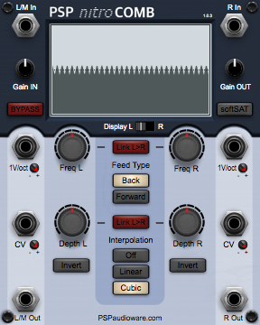 PSP NitroとPSP N2Oに搭載された、自由度の高いコムフィルターをモジュール化した「PSP nitroComb」。右チャンネルと左チャンネルに周波数/深度調整があり、それらをリンクさせたり、片側を反転させることができます。また、フィードフォワードか(驚くほど共鳴する)フィードバックかを選択したり、リニアかキュービック、あるいは補間なしのいずれかを選択可能。マスター入出力ゲインと、有名なsoftSATサチュレーションも備えています。マスターステレオのCVイン/アウトだけでなく、各チャンネルの周波数/深度調整用に個別のCVインを搭載。自由度の高いクリエイティブなコムフィルターをお探しなら、PSP nitroCombをお見逃しなく!