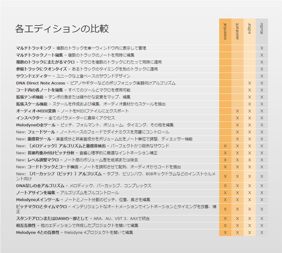 - Melodyne 5 各エディションの説明と動作条件は下記をご確認下さい。