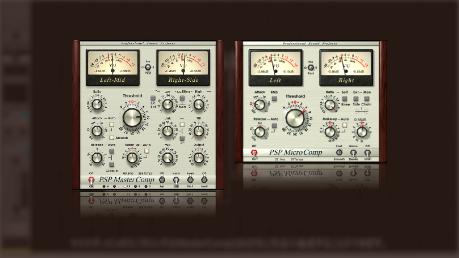 PSP Master CompとPSP Micro Compは、高い忠実度を誇るステレオダイナミクスプロセッサーで、ミキシングの際のトラックやバスに優れた効果をもたらすのはもちろん、幅広い機能とその高い操作性からステレオマスタリングにも素晴らしいエフェクトをかけることができます。