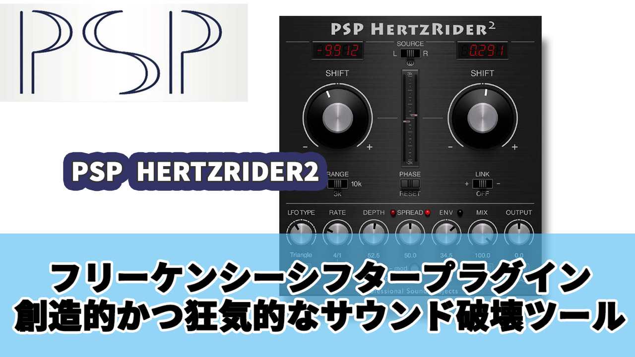 PSP HertzRider2はフリケンシーシフタープラグインです。 このプラグインは、可能な限り、リソースを少なくし、周波数によって変化するレイテンシーをより少なくするために、できる限りシンプルな設計になっています。