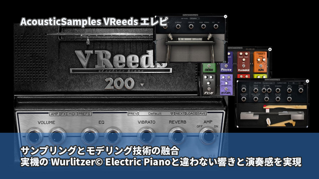 VReedsは200と200A、2つのWurlitzerピアノをベースにした最新型のバーチャル楽器です。サンプリングの持つ本物の質感と響き、モデリングの利点であるリアルな変化とフィール、そして自由なカスタマイズ性、これまでの弱点ほぼ払拭した極上のバーチャルウーリッツァピアノです。日本語マニュアル付属!!