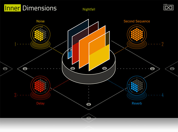 ミニマルテクノのシャドーホールとダークシネマによる内省的でシュールなコントラストから生まれたInnerDimensionsは、変化するリズミカルなアルペジオからムーディーなテクスチャピアノ、深みのあるベースシーケンス、動きのあるアナログリードに至るまで、120の音色パッチを提供します。