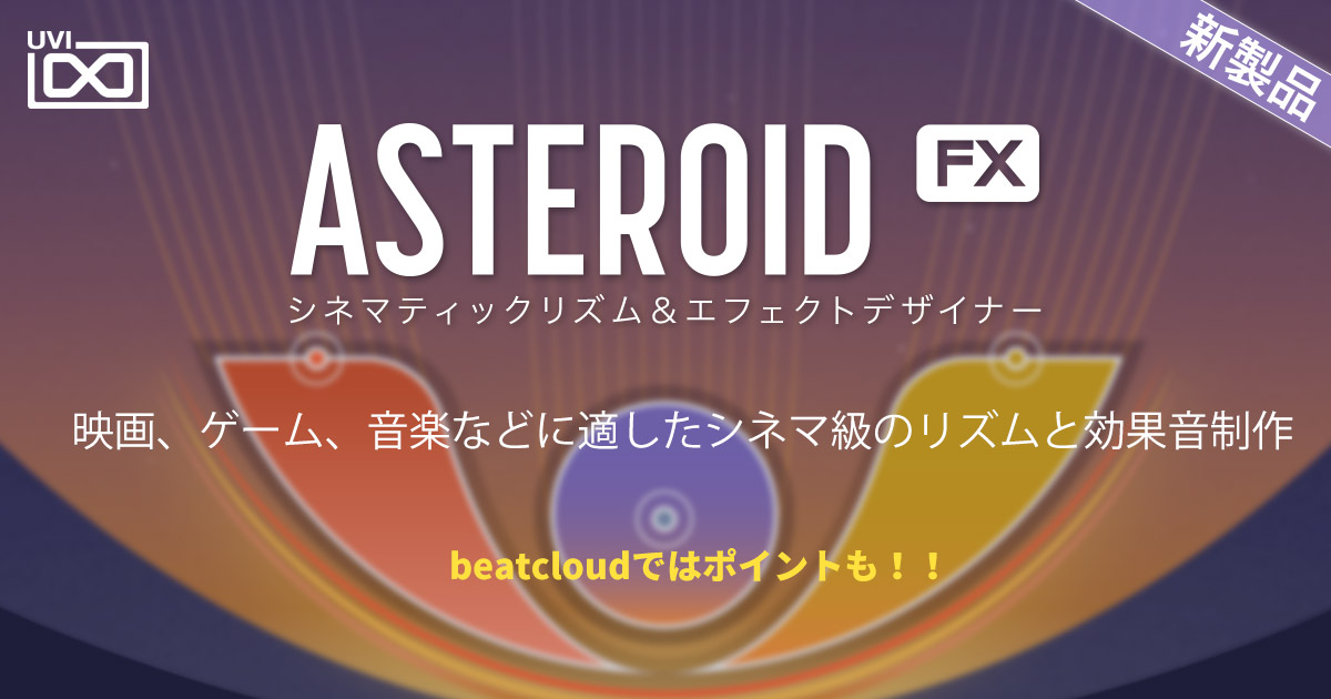 Asteroidは強力かつリズミカルに進化するインパクト、パーカッション、うねり、トランジション、シーケンス効果などを生み出すクリエイティブツールです。7つのサンプルレイヤーで構成されたAsteroidには、シネマ品位のオーケストラパーカッション、エフェクト、エレクトロニックとアコースティックドラム、フォーリー、サンプリングサウンドなどを含む、幅広く網羅したソースサウンドライブラリーが付属します。詳細かつ精密設定可能なエディターによって、レイヤーごとにサウンドを形成し整え、空間的にミキシングし、マルチエフェクトを適用してマスターEQとダイナミクスで仕上げます。そしてドラックごとに用意された128ステップのベロシティ、パン、ピッチ、ディケイ、リバーブとディレイコントロールで、変化に富んだシーケンスサウンドをトラックごとに個別作成できます。直観的で高効率のワークフロー、奥深いサウンドライブラリー、豊富かつ刺激的なプリセットを備えたAsteroidは、作曲家、サウンドデザイナー、ミュージシャンを問わず、手にすべき価値のあるパワフルツールです。