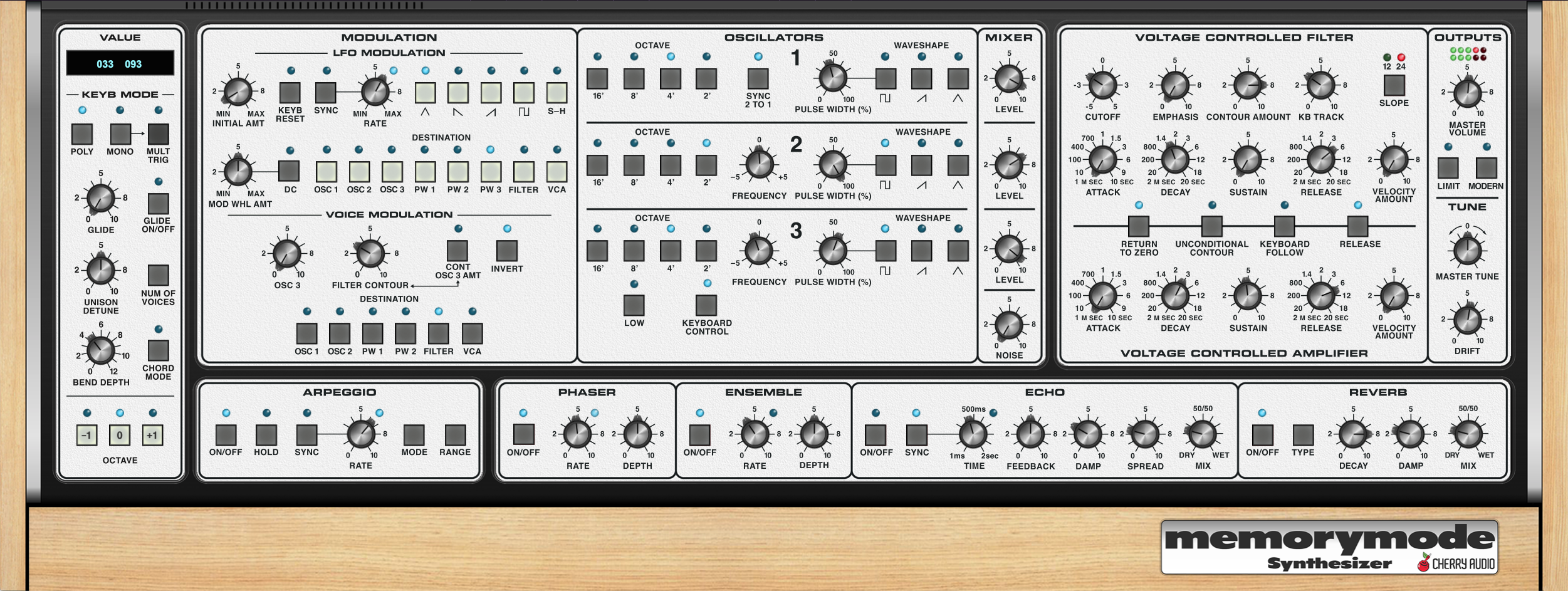 Memorymodeは、オリジナル楽器の驚くべきサウンドとフィーリングを、ビンテージ・オリジナルのほんのわずかなコストで再現し、Memorymoogのパワーと音楽性のすべてを、誰もが入手可能な価格で提供します。