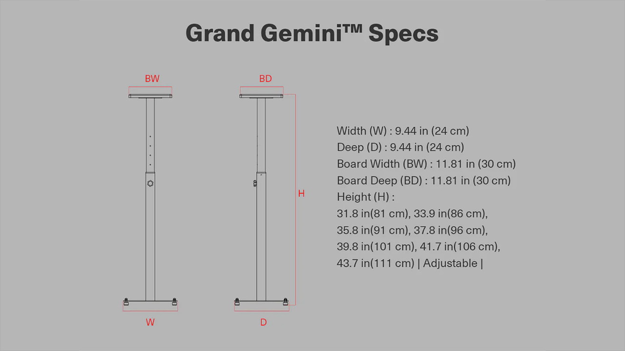 81cmから111cmまで、7つの異なる高さに調整可能です。Grand Gemini はユーザーの体型や距離に応じて、ベストなリスニング環境を創り出します。