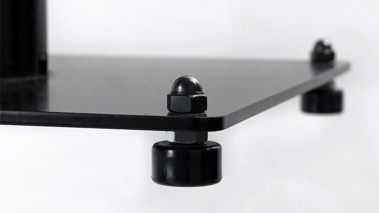 台座から地面へ直結する構造は共振を低減し、ブックシェルフ・スピーカーの機能を最大化するのに役立ちます。