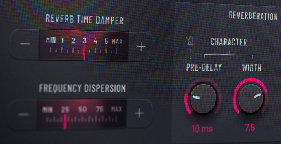 これは、単に実際のハードウェアプレートの均一な拡散と美しいスペクトルディケイを再現するだけでなく、正確な周波数分散、幅、変調制御などを含め、他のプレートエミュレーションでは不可能な方法で古典的なアルゴリズムリバーブパラメーターの微調整を可能にする恩恵もあります。