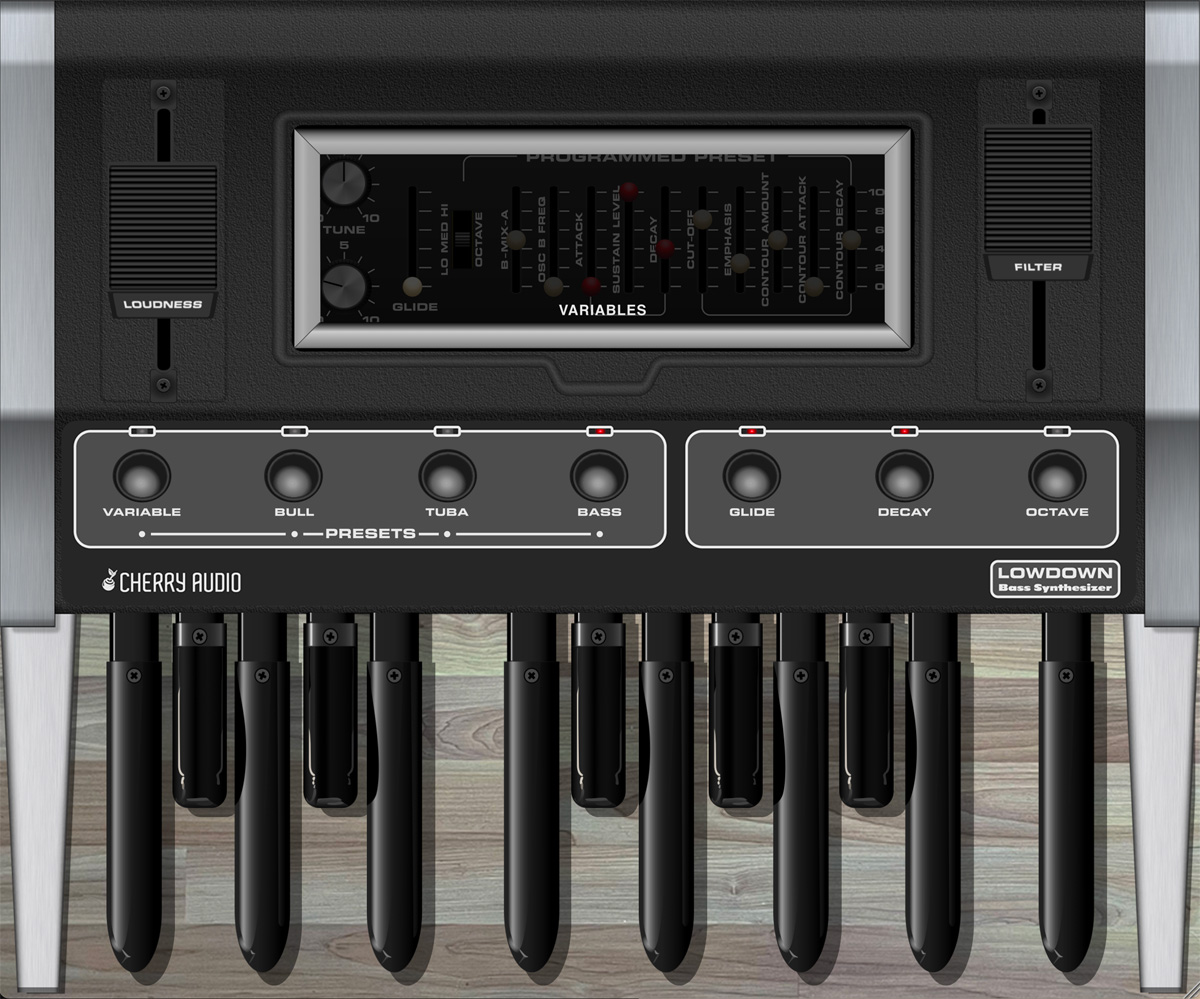Cherry AudioのLowdownを作るために、受賞歴のあるシンセデザイナーでDSPの伝説的人物であるマーク・バートンがオリジナルの合成回路を慎重に分析して正確に再現し、他に類を見ない大規模なバーチャルベース体験ができるようにしました。私たちは、この楽しくて使いやすいアースムービング・ベース体験の結果にただただ感激しています。