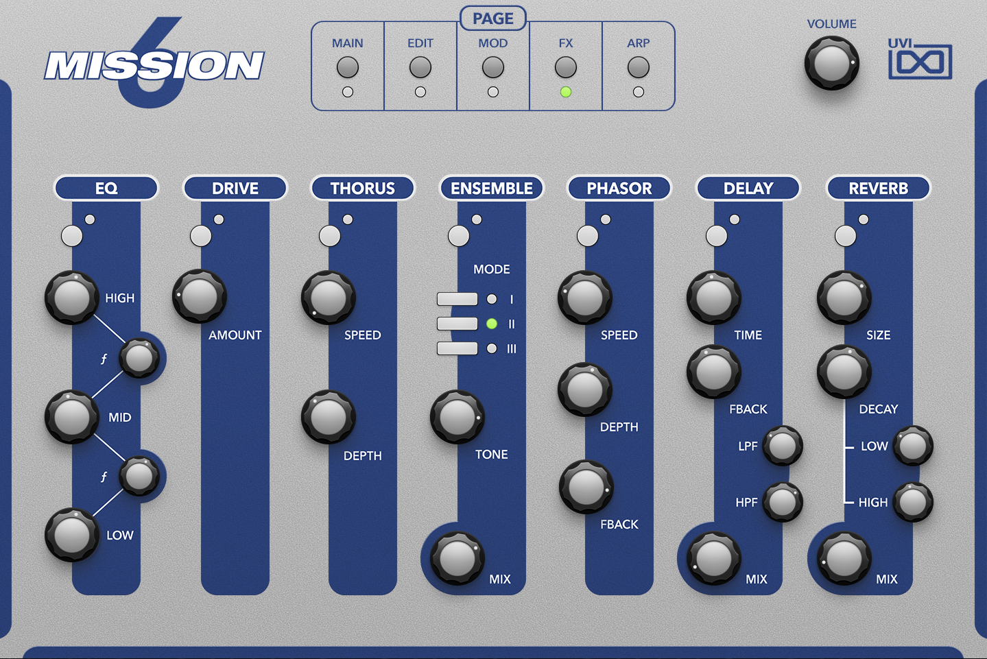 Mission 6の美学は、ハードウェアに近いサウンド編集の雰囲気と感触を有しながら、お馴染みのデュアルレイヤー構造によって、実機以上のサウンドデザインを可能にします。オシレーター、エンベロープ、マルチモードフィルター、LFOとステップモジュレーター、デュアルアルペジエーター、EQ、ドライブ、Thorus(コーラス)、アンサンブル、フェーザー、ディレイ、Sparkverb(リバーブ)など、高品位のエフェクトセクションまで、すべてがフルコントロール可能で、洗練された操作画面によって、高度なサウンド効果や奥深い響きも簡単操作で即座に調節できます。