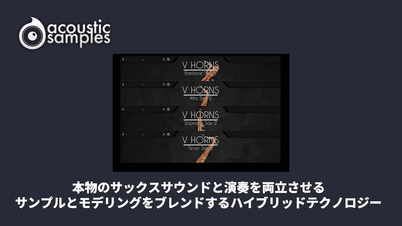 AcousticSample社はシンプルでパワフルな演奏方法を備えた、本格的なサウンドの素晴らしいホーンを作ることを目指しした。HAT テクノロジーは、それを実現し、非常に柔らかい演奏から大きな演奏まで、それぞれの音色の進化を正確に再現することを可能にします。VHorns は、ただのありがちなプレイヤーに載せた重くてマルチサンプリングされた楽器ではありません。
