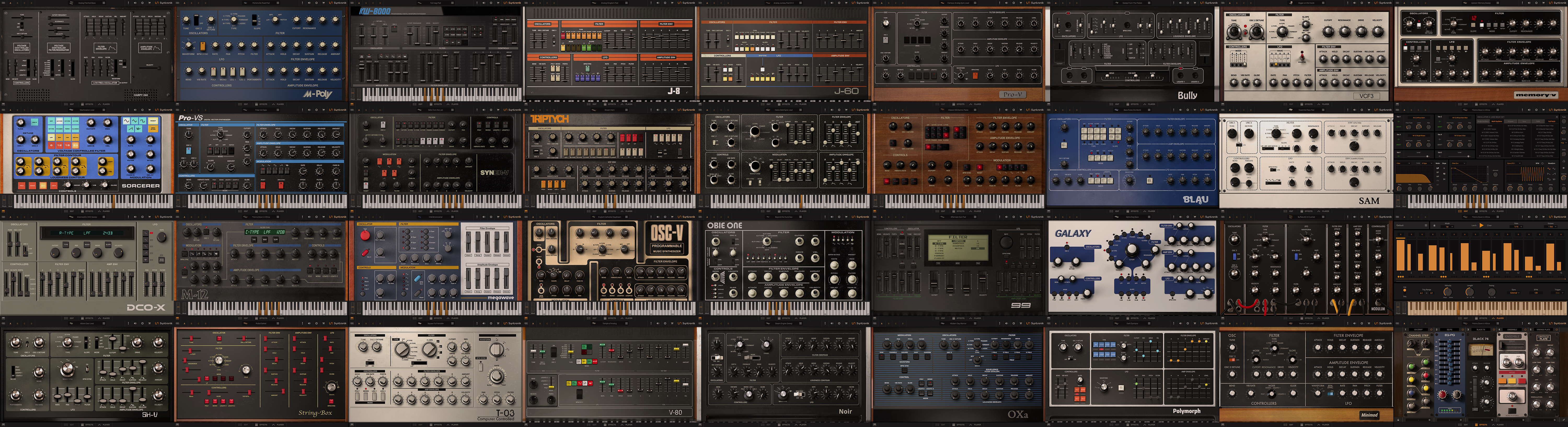 Syntronik 2では、新たに11機種を収録したシンセが追加されました。OSCar、OB-1、Matrix-12、Moog Sourceといった定番アナログ・シンセから、レアなFMシンセのGS1、DK2、ウェーブテーブル・シンセの名機Prophet VS、Microwave、DW8000から、シンセ、ストリング・マシン、ブラスと3つの顔を持つアナログ・シンセのTridentまで、シンセサイザーへの愛にあふれたモデルの数々をお楽しみ下さい。