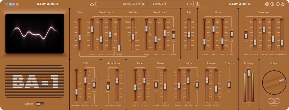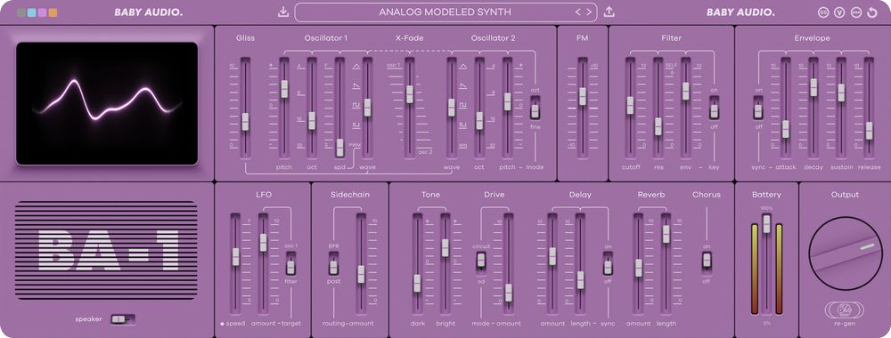 サウンドジェネレーターは、BA-1の心臓部であり、魂です。オリジナルのハードウェアが愛した生々しいグリットやドリフトを提供するために、綿密にモデリングされています。三角波とPWM波形は、クラシックな80年代のダブ・サウンドを求めるなら、特に注目です。BA-1では、もう一つのオシレーターが追加され、より柔軟なサウンド・デザイン・オプションが可能になりました(オリジナル機と比較して)。