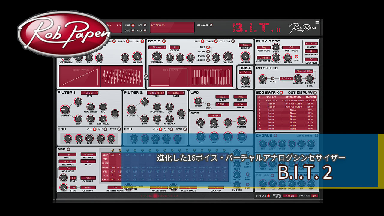 B.I.T. 2は、アナログ・モデリング・シンセシスに焦点を当てた、16ボイス・2オシレーターのバーチャルアナログシンセサイザーの最新バージョンです。