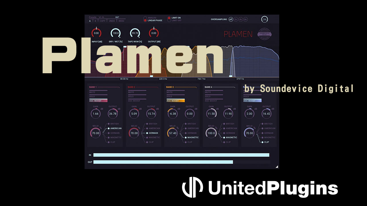 平凡さと、洗練さの違いは、時として単にサチュレーションの有無だけかもしれません。しかし、それは量だけでなく、そのキャラクターや質感も重要です。我々はすべての周波数帯が異なる処理を必要とすると考え、そうして生まれたのがPlamenです。この柔軟なマルチバンド・サチュレーターは、帯域ごとに異なる種類と量のサチュレーションを追加可能で、バランスのとれたトーンを実現し、さらにそれを並列処理することもできます!