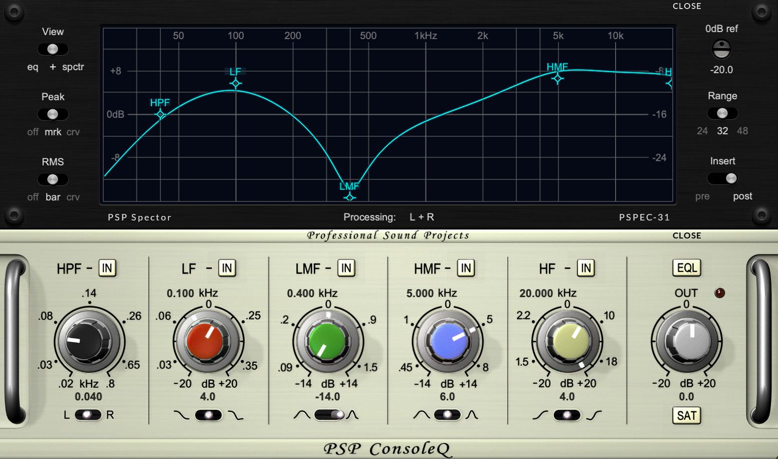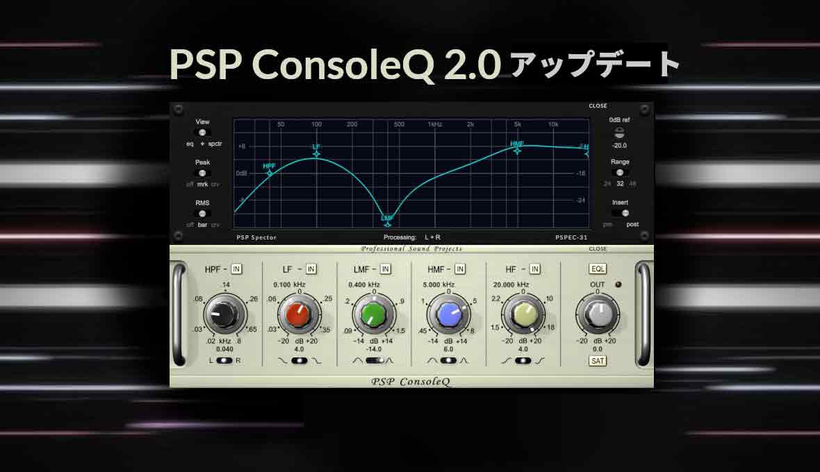 さらに、PSP ConsoleQの新たな楽しみ方が加わりました。PSP Spector PSPEC-31Pポップアップ・モジュールは、複数の表示オプションを備えた31バンドのリアルタイム・アナライザーを提供し、ワンクリックでどのバンドでも複数のEQ設定を一度にコントロールできるグラフィカル・ユーザー・インターフェイスを備えています。