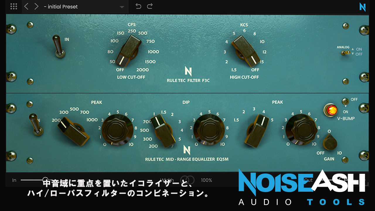 多くの研究と努力を重ね、NoiseAsh はこれらの伝説的なイコライザーユニットを非常に精密にモデル化したRule Tec®コレクションを生み出しました。