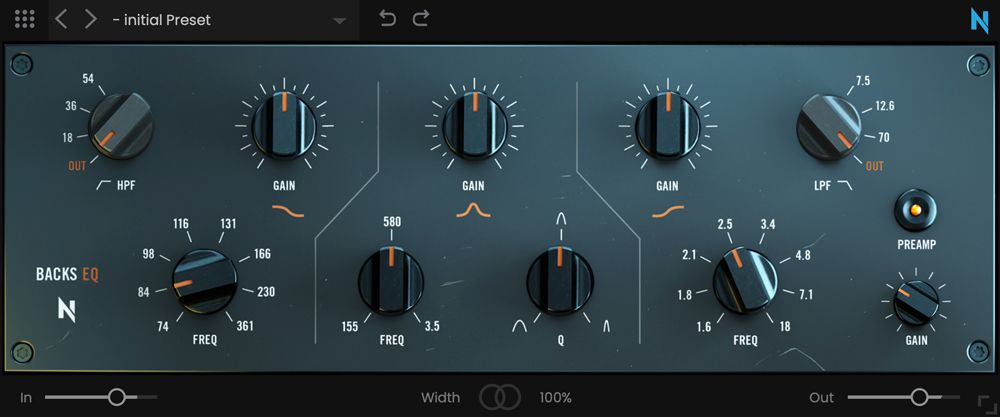 Backs EQ を使用して、濁りのなく太いローエンドと耳障りではない明るさをミックスに追加します。