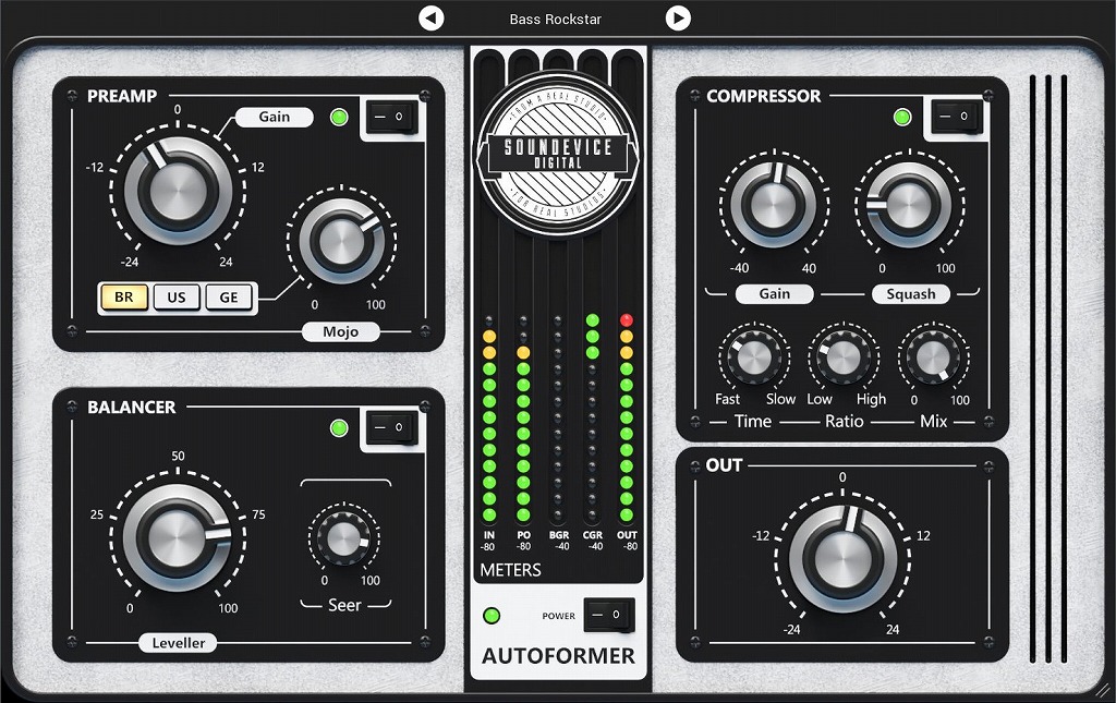 Autoformer は、オートボリューム機能と穏やかなコンプレッサーを備えたアナログのようなプリアンプを組み合わせにより、楽器だけでなくボーカルやナレーションにも最適なツールです。
