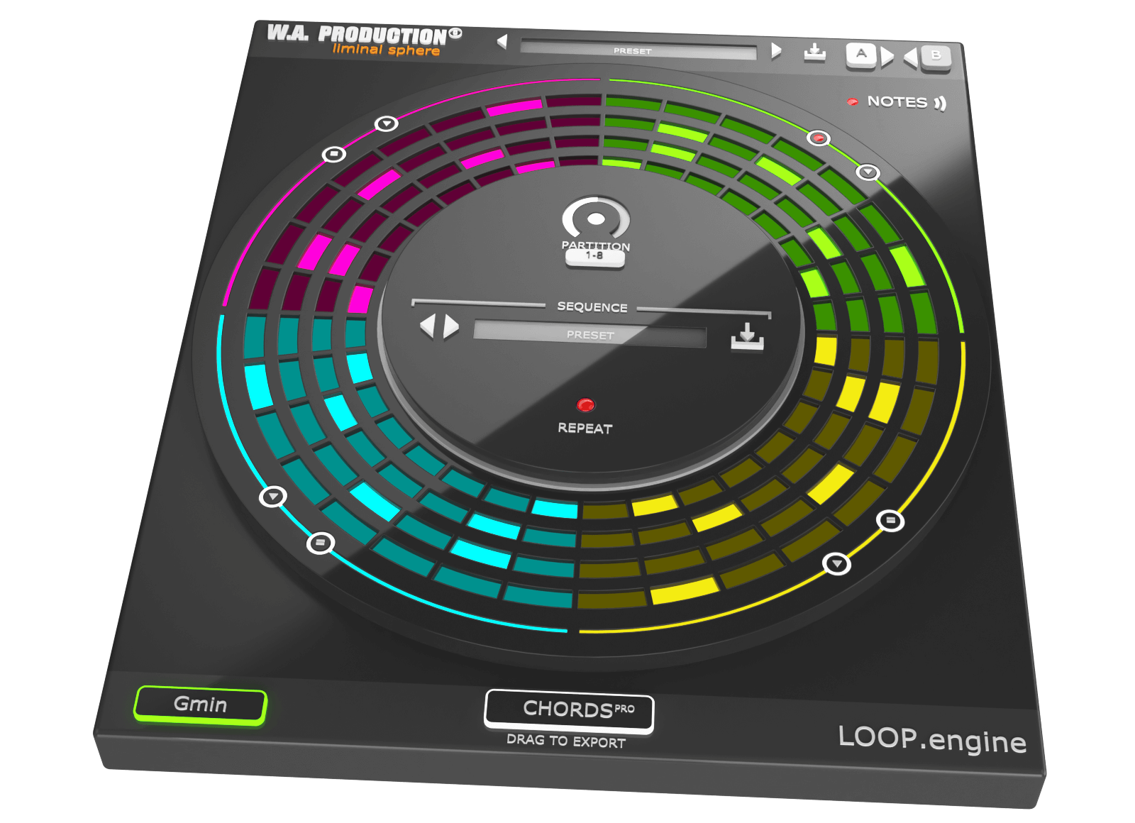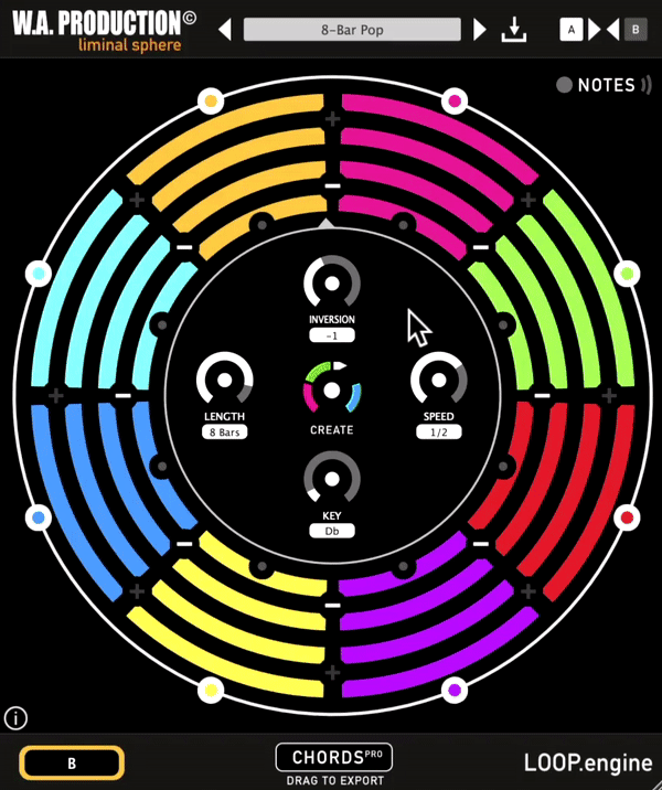 このプラグインは、簡単なアイデアから瞬時にコードとアルペジオを生み出し、そのすべてが直感的な円形インターフェースで完全にカスタマイズ可能です。