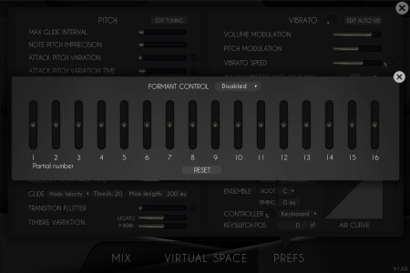 VWindsはすでに高度なカスタマイズが可能ですが、さらにバリエーションを増やすために、サウンドの各ハーモニクスを調整することができます。