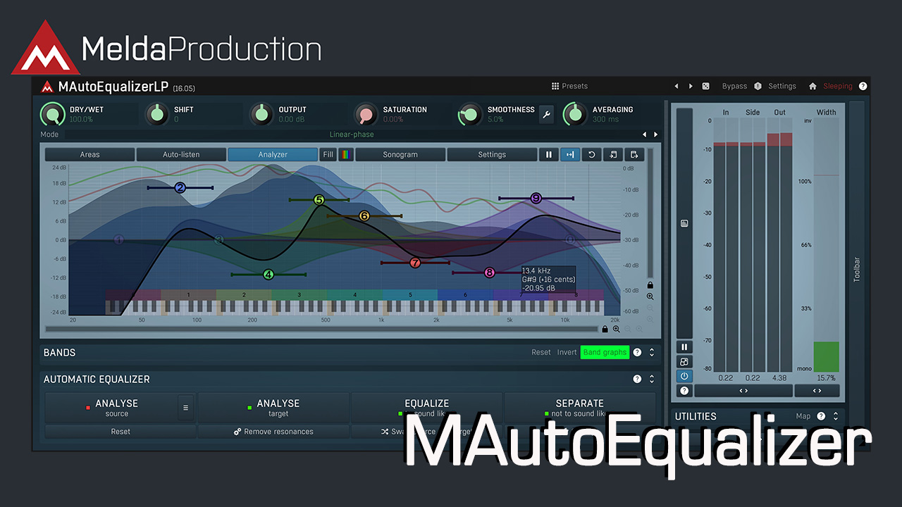 MAutoEqualizer は、ユニークな機能を備えたソノグラムと組み合わせた、卓越した多用途のスペクトラム アナライザーを提供します。