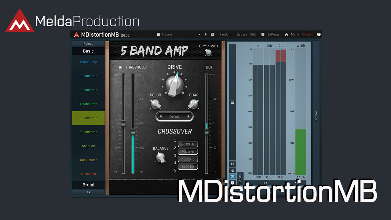 MDistortionMB は、汎用アンプ シミュレーターとデジタル ディストーションプロセッサーを組み合わせたユニークなディストーション プラグインです 。