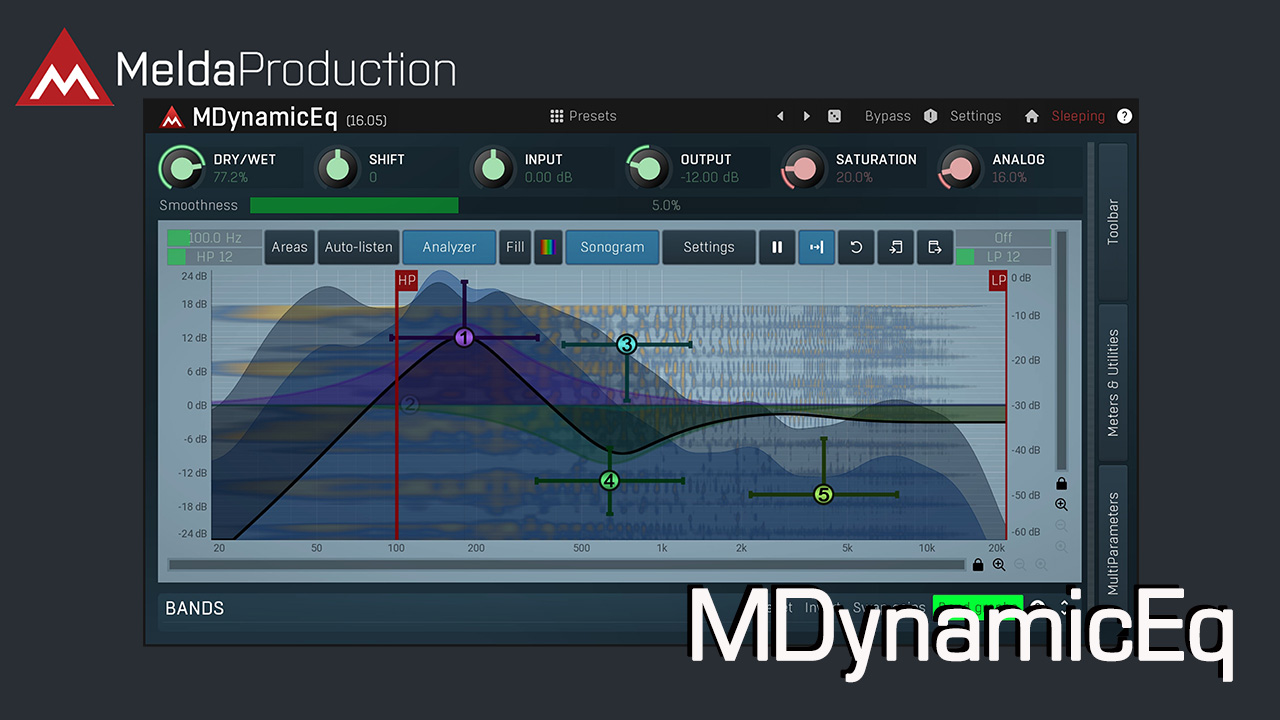 MDynamicEq は、ユニークな機能を備えたソノグラムと組み合わせた、卓越した多用途のスペクトラム アナライザーを提供します。