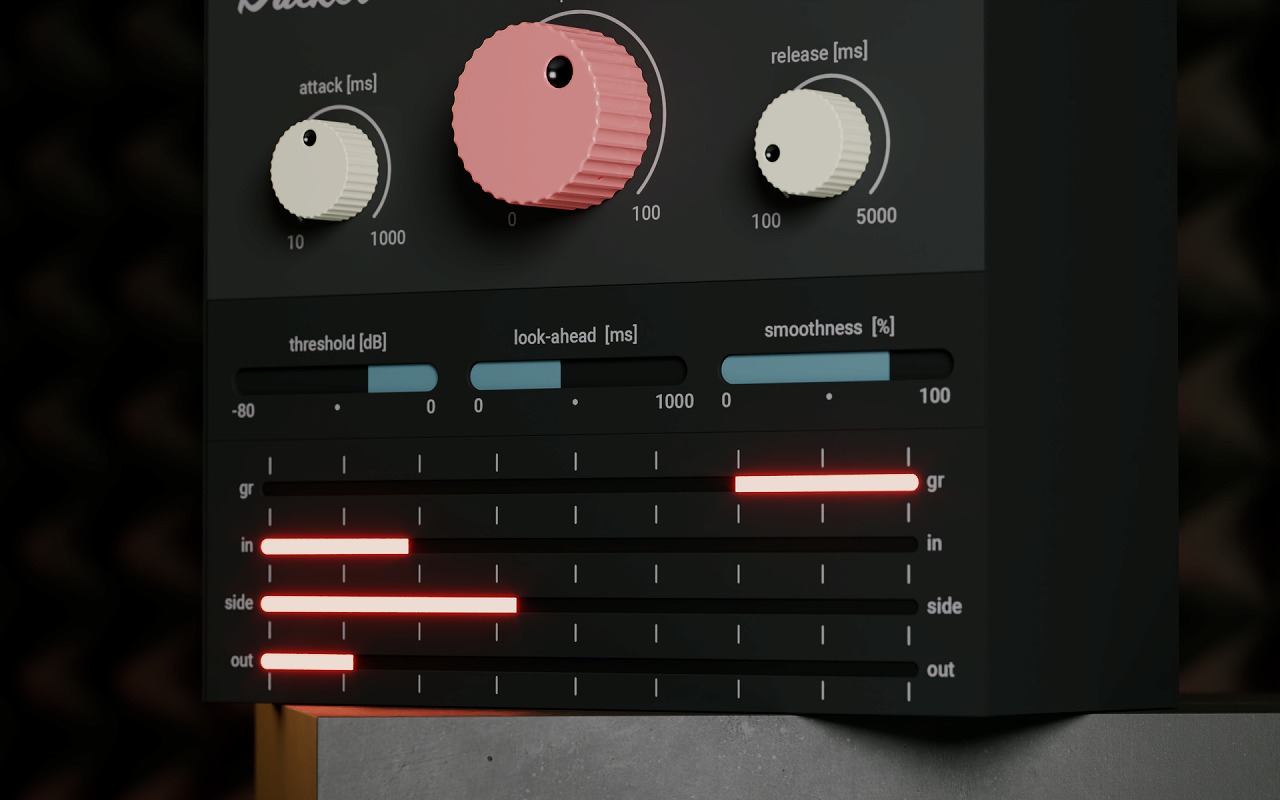 VoxDuckerは主にボイスオーバーやボーカルに優れた効果を発揮するように設計されていますが、実際にはどんなオーディオタイプにも使用できます。選択可能なモードを使用して、キックが鳴るときにベースをダッキングしたり、リードが鳴るときにリズムギターをダッキングしたりすることができます。