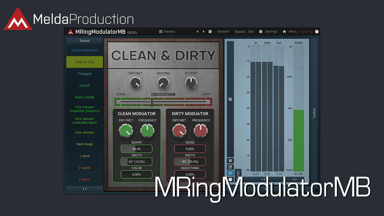 MRingModulatorMBは、マルチバンド機能により、多くの種類のオーディオに使用できる、非常に高度なリングモジュレーションエフェクトです。