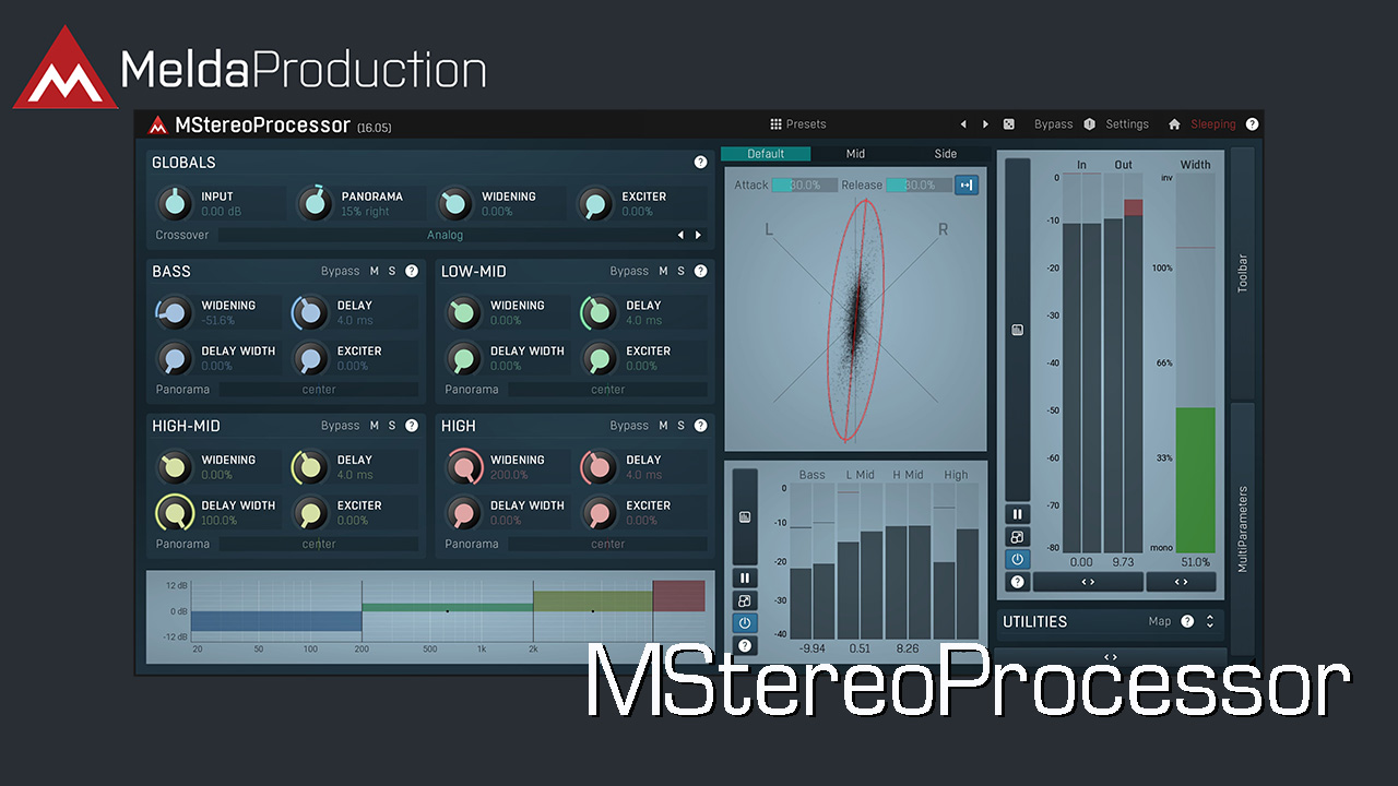 MStereoProcessorは、高度なマスタリング用マルチバンドステレオアナライザーおよびエンハンサープラグインです。