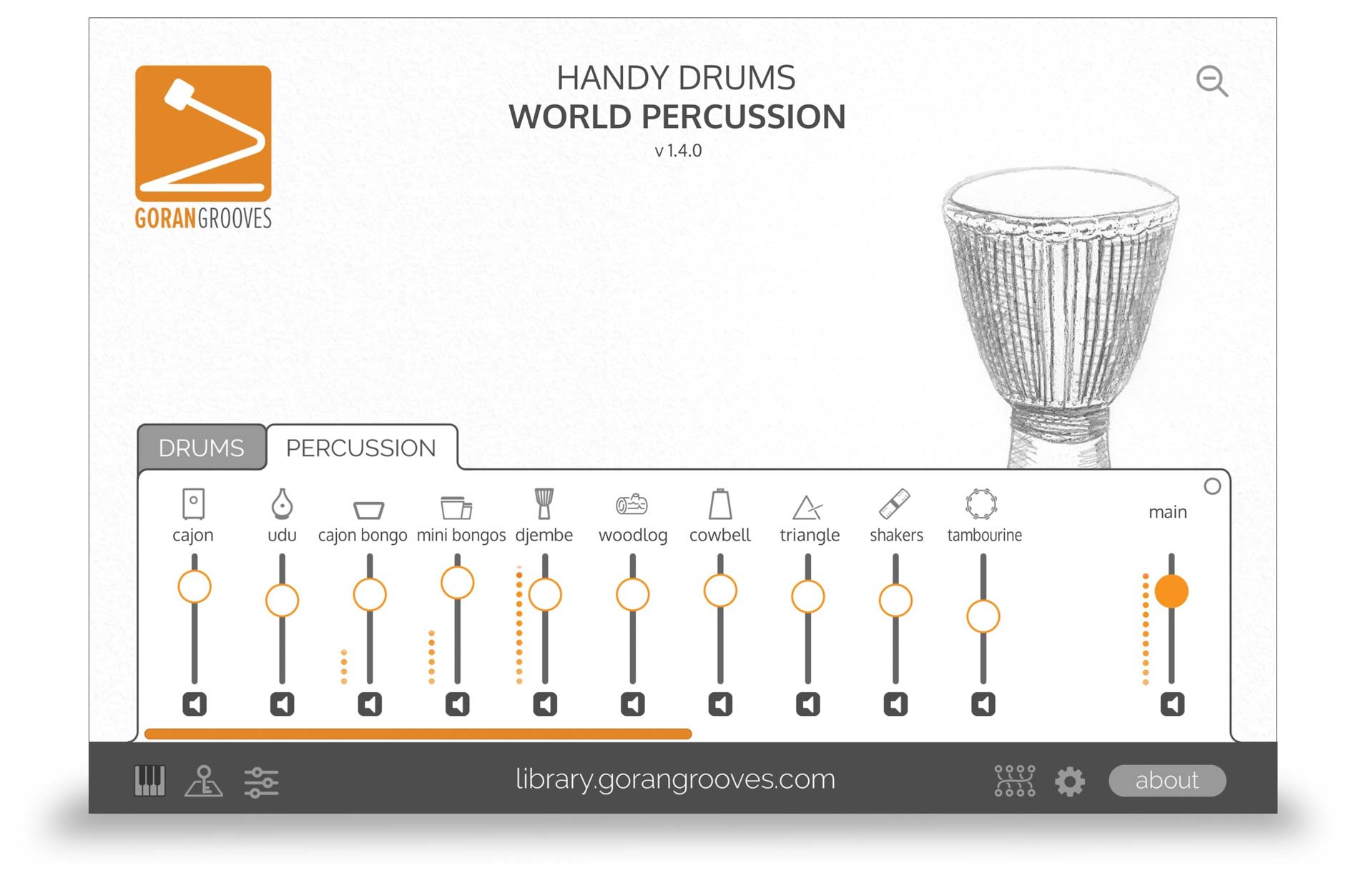 他の Handy Drums プラグインと同様に、WORLD PERCUSSION はミックスに対応していますが、