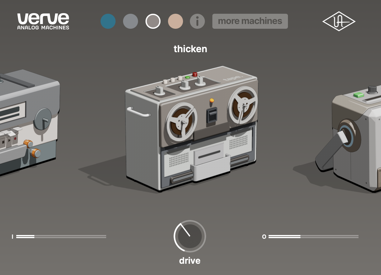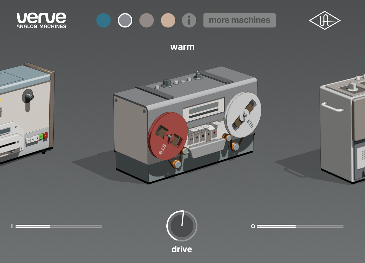Verve Analog Machines Essentialsは、UAがデザインした4種類のカラフルなエフェクトを搭載し、