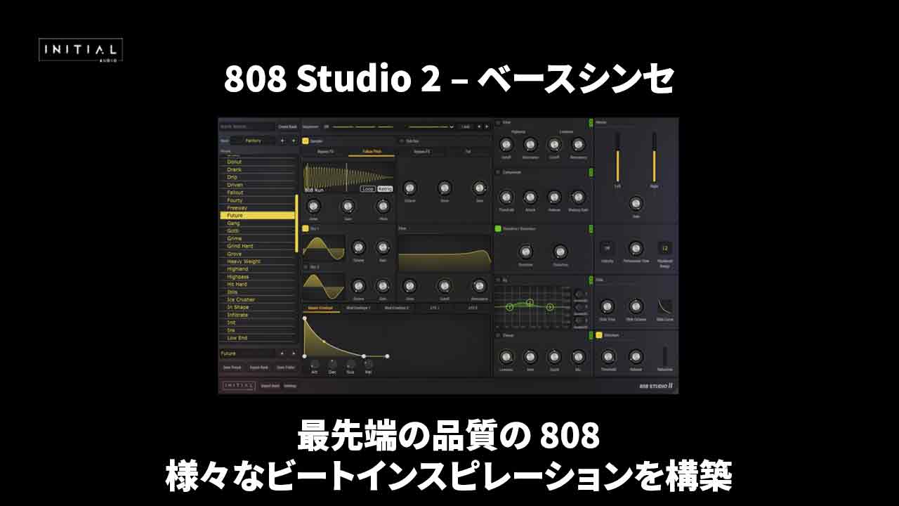 クリーンなサブベースからダウンやダーティなベースまで、808 Studio はその用途に最適なベース シンセです。