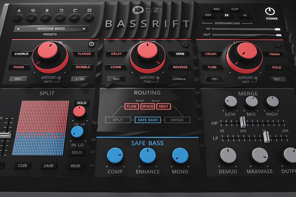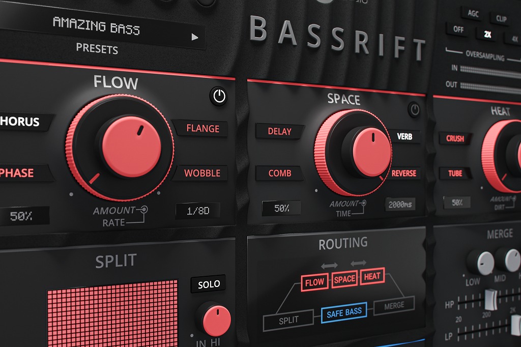 Bassrift は、ベース信号の低周波と高周波をシームレスに分離し、タイトで重厚なボトムエンドを作り出すと同時に、高周波に魅惑的で驚くべきエフェクトを追加します。