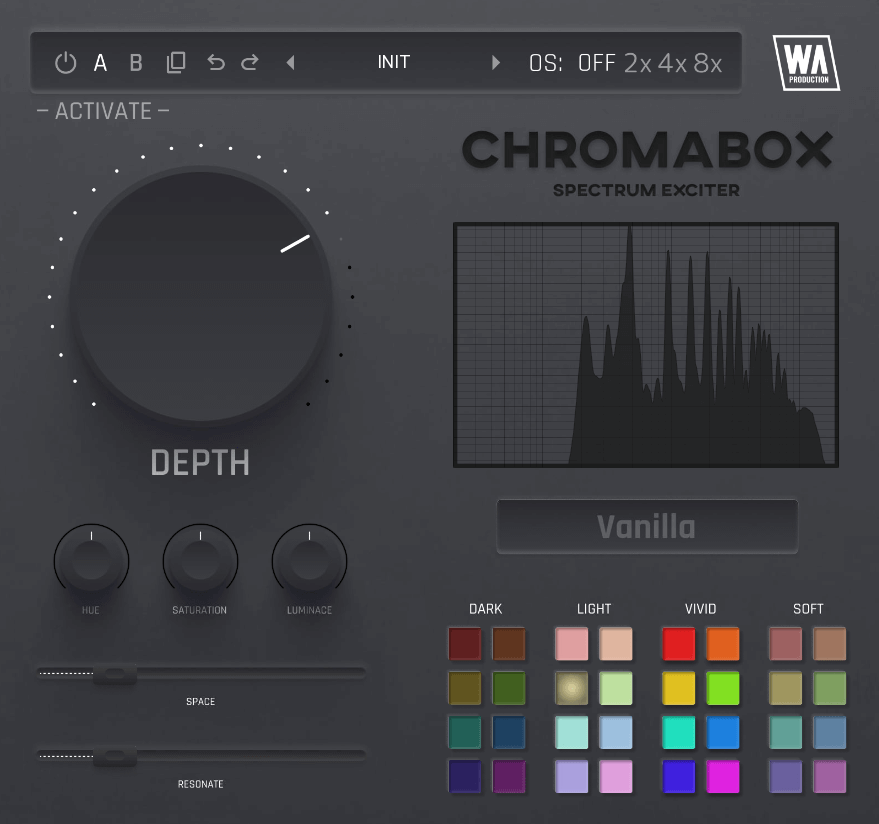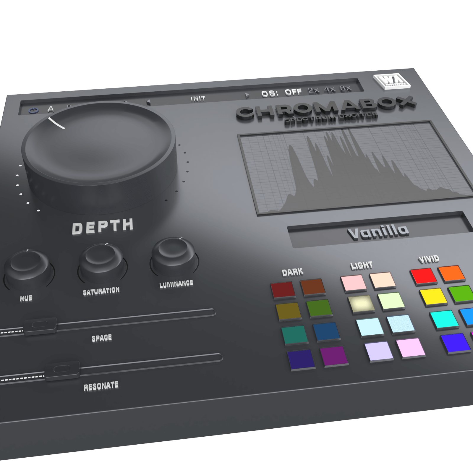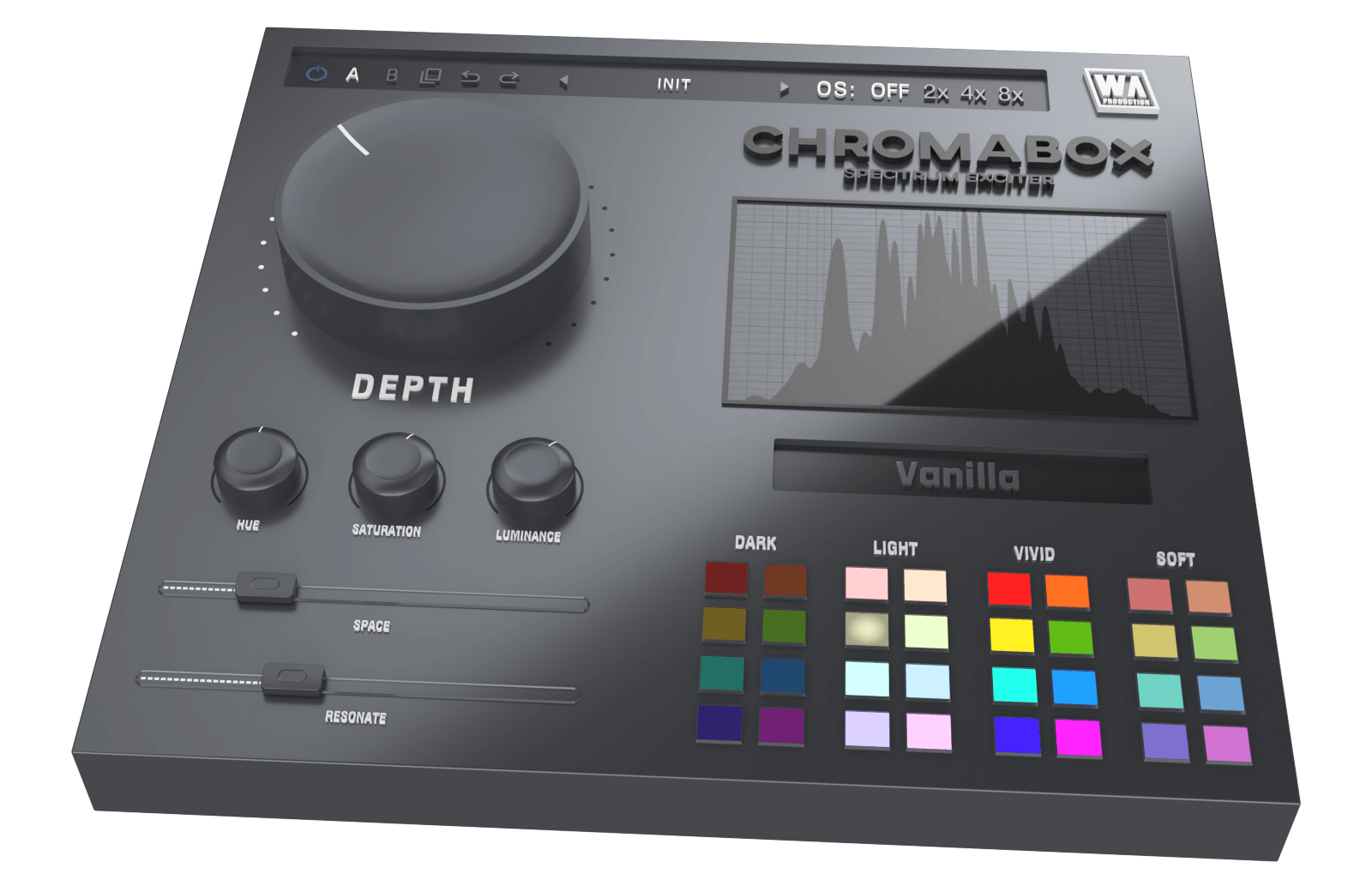 ChromaBox のクリエイティブな突然変異に不可欠な 2 つのコントロールは、Space と Resonate です。