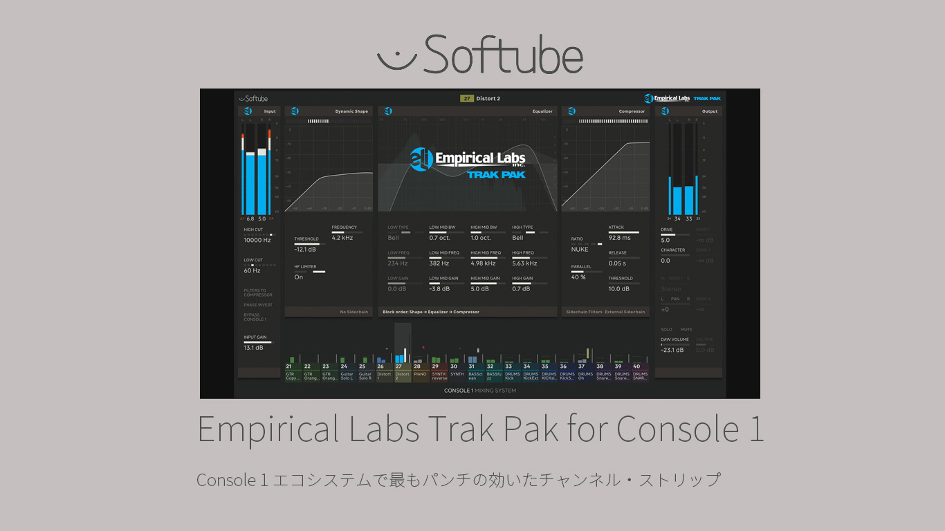 Dave Derr氏およびEmpirical Labsと共同開発したTrak Pak for Console 1は、Softubeの他のチャンネル・ストリップとは全く異なります。