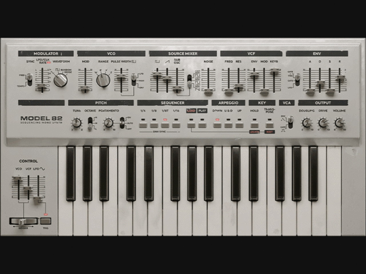 Model 82 Sequencing Mono Synthは、リード/ベースとシーケンサー/アルペジエーターによるテクノの象徴的なサウンドからフィーリングまでを忠実にプラグイン化。