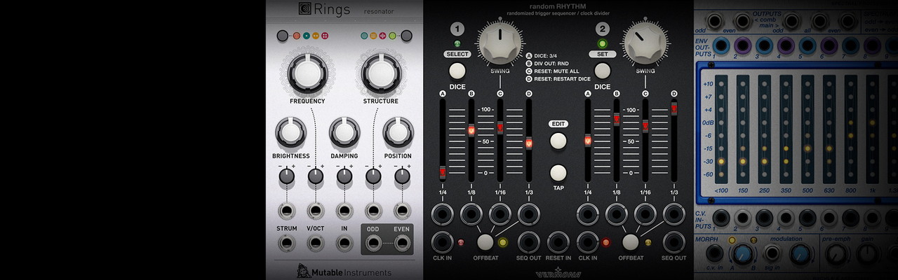 - 基本パッケージに20基を超えるユーティリティ・モジュール(MIDI to CV/Gate、ミキサー、スルー、サンプル&ホールド、各種スイッチ、マルチプル、ディレイ、オフセット、シーケンサー、クロック・ソース、ディバイダー、ロジック・ツールおよびシグナル・ツール、ポリフォニックMIDI to CV/Gate等)を収録
