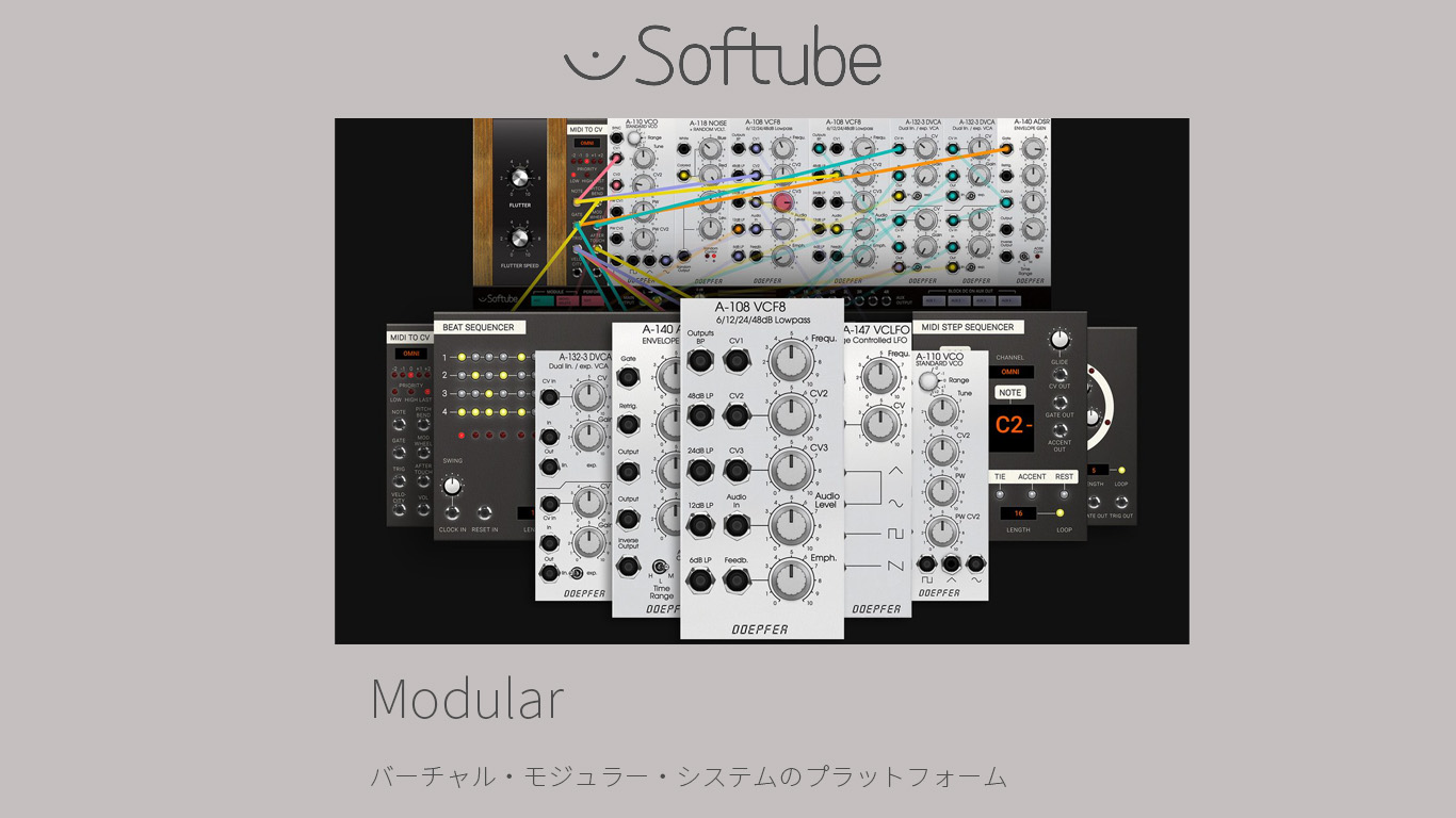 そして今日、SoftubeのModularプラグインによって、モジュラー・システムは正に誰の手にも届くツールとなり、さらに4ms、Buchla、Intellijel、Mutable Instruments公認のアドオンもラインアップしプラグインならではの拡張性も有しています。