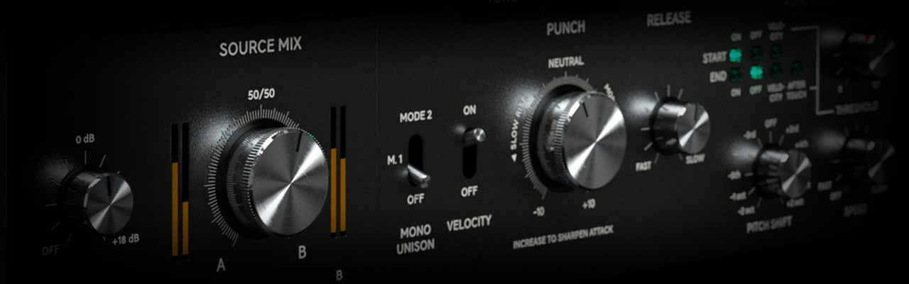 Punchではサウンドの全体的な振幅エンベロープを設定し、スローに立ち上がるサウンドにすることも、歯切れが良いパンチのあるサウンドにすることも自在です。