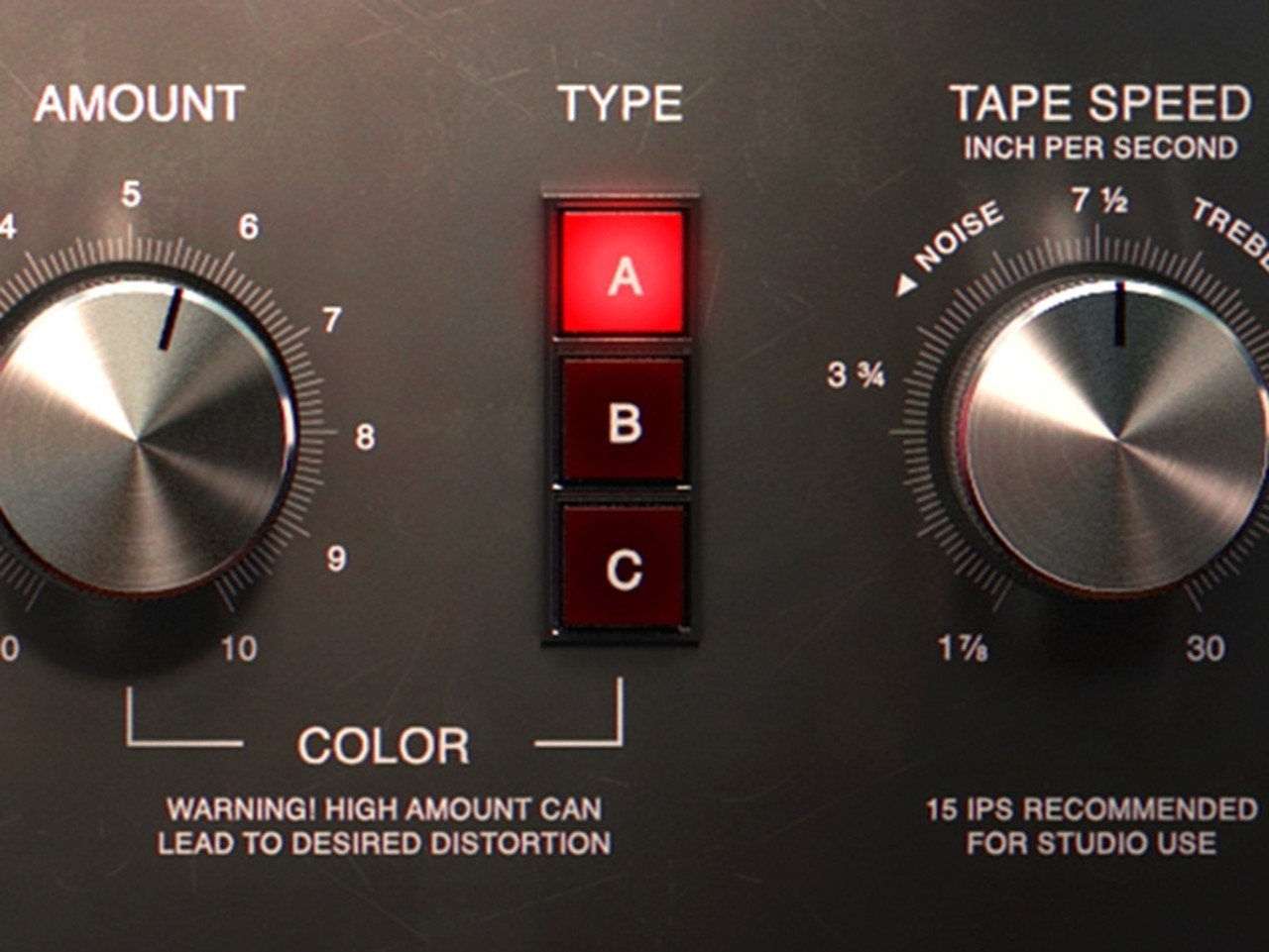 テープ・マシンのタイプを選び「Amount」ノブを調整。ほとんどの場合、これだけでトラックの隅々にまでアナログ・テープの良さが行き渡ります。