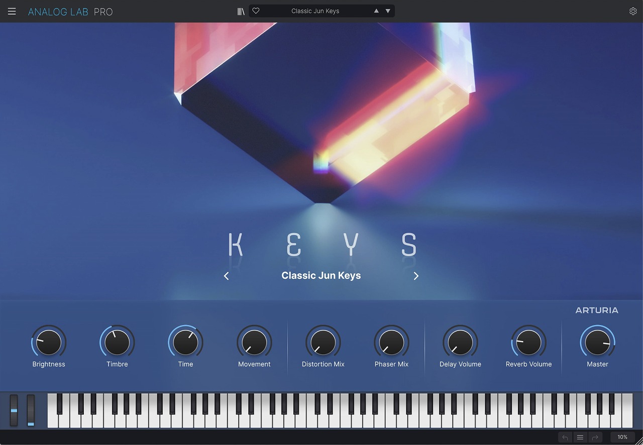 Analog Lab Vは、時代を超越したインストゥルメントの数々にまたがる数千種類ものワールドクラスのプリセット、即座にアクセスできるコントロール、完璧な統合をワンストップにまとめたプラグインです。
