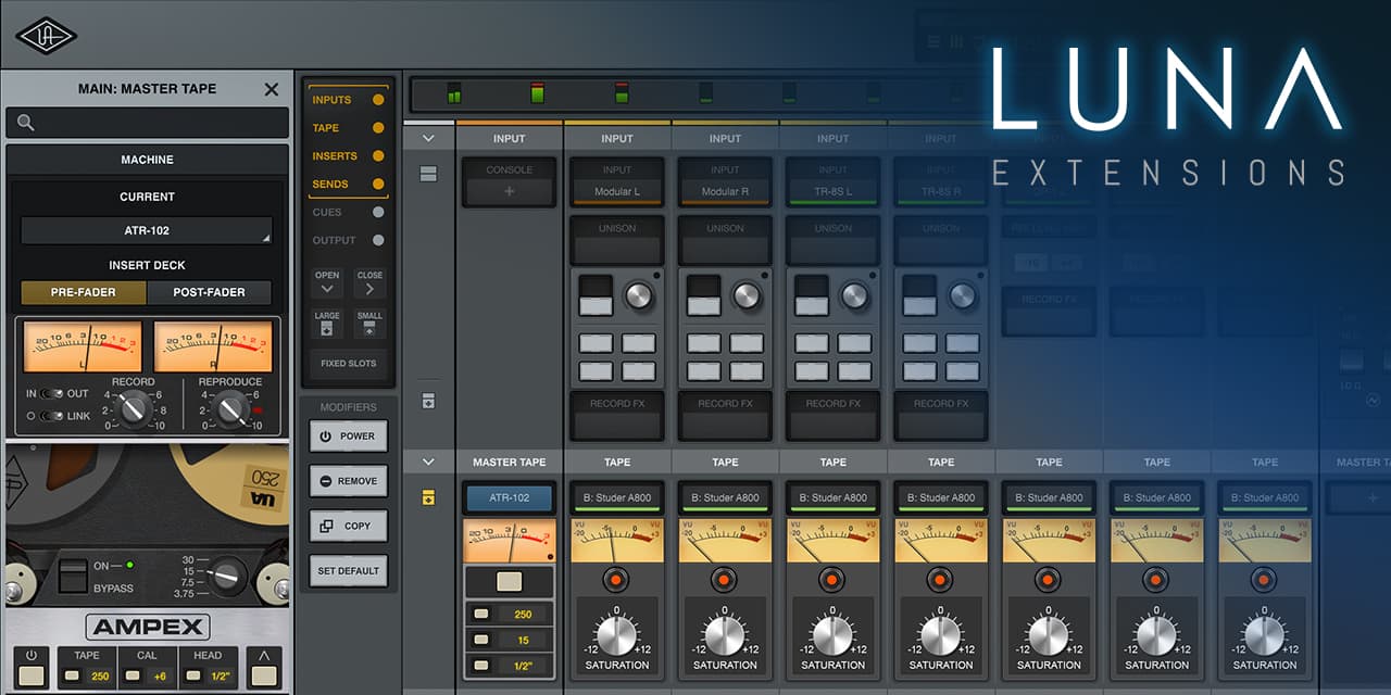 Ampex ATR-102 LUNA Extension を使用すると、LUNA のミキサーがアナログ テープのワンダーランドに変身します。