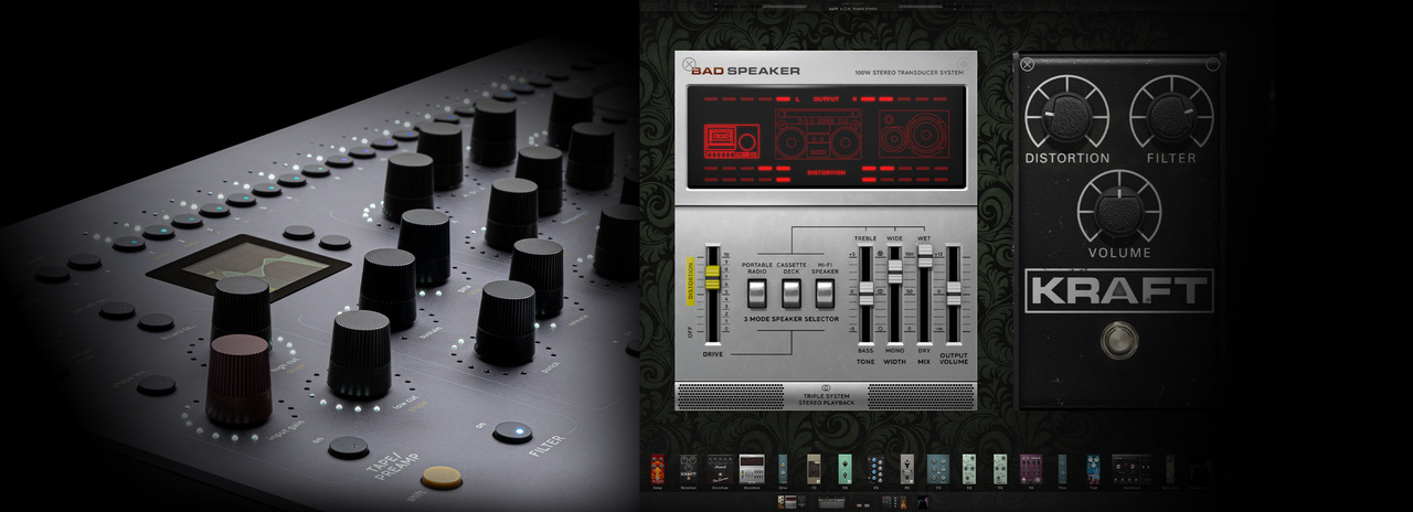 - Tape、Tape Echoes、Harmonics、Saturation Knobを手掛けるディストーション・マスターSoftubeが開発