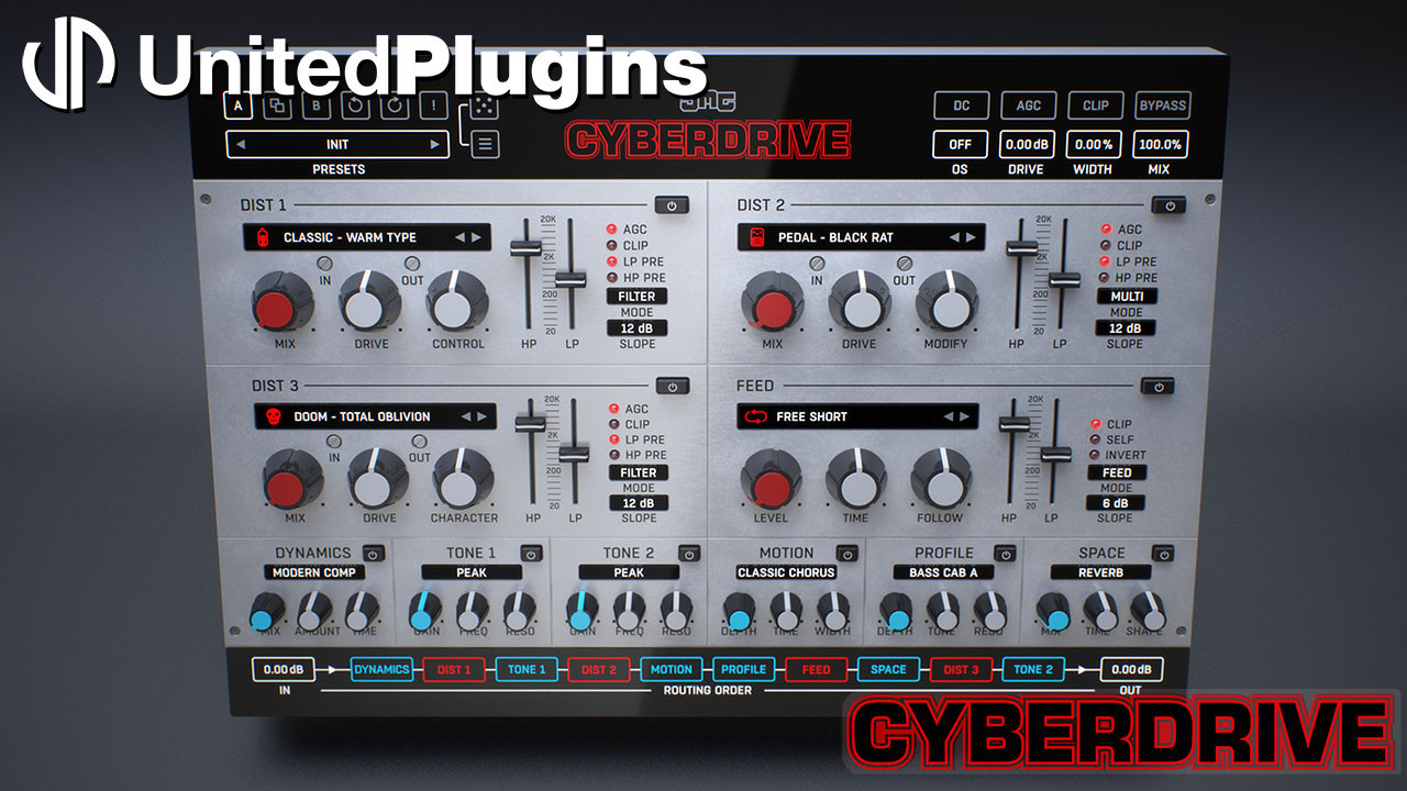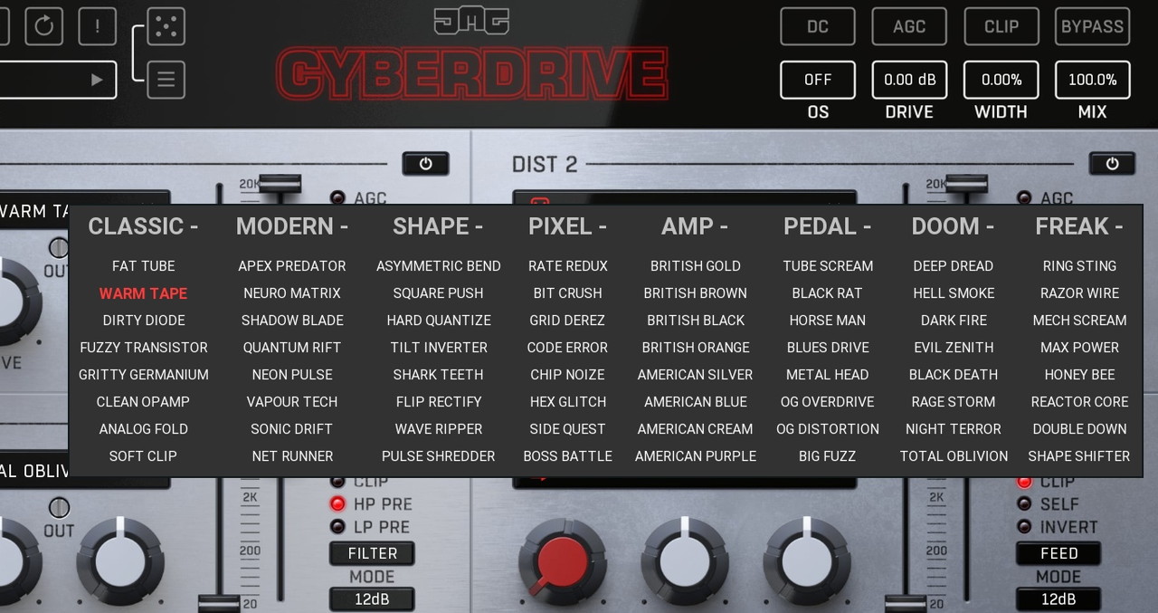 各ディストーションには、ゲイン補正された専用のドライブとミックスがあり、完璧なバランスを設定することができます。